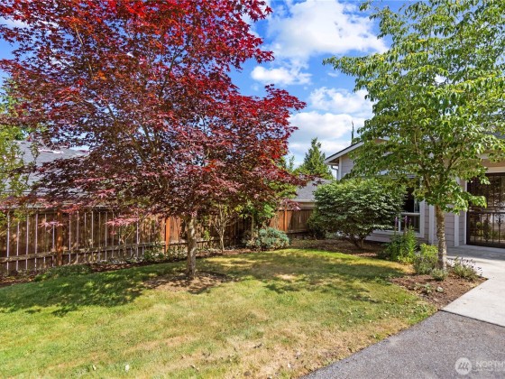Spacious single-family rambler in a perfect location, minutes from Mill Creek Town Center. While considered a condo, with a fully landscaped and HOA-maintained yard, it feels like a private home, & no stairs for easy accessibility. The huge great room allows for many furniture options & the large beautifully appointed kitchen has plenty of room for dining. Loads of cabinetry and a huge double pantry. Large wood-wrapped picture windows & new skylights flood the home w/natural light. A heat pump w/HEPA filter, delivers both heat and a/c for comfort year-round. The primary ensuite features a double shower and a huge jetted tub. The 3-car garage provides plenty of parking & storage. Private backyard. New roof in 2023. $5000 paint allowance.