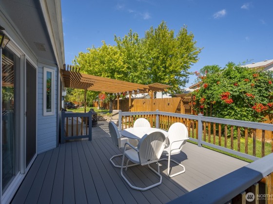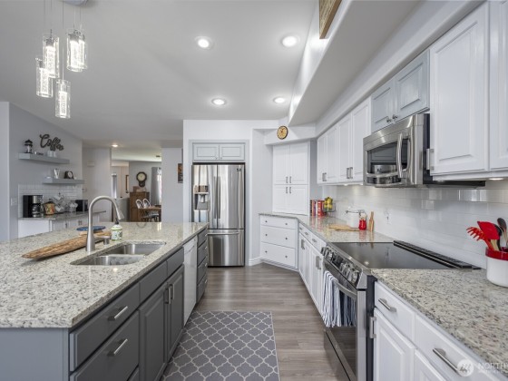 Priced well under market value, this light & bright remodeled home consists of two large living rooms, a formal dining room, breakfast room, fabulous kitchen w/pull-out/soft-close drawers & doors, a magnificent island, an appliance garage, new lighting, new dishwasher, a walk-in pantry, a new HVAC system, 4" baseboards & ample storage throughout the home. The kitchen has an open concept & is perfectly situated for large & small gatherings. There is a coffee bar, a newly built-in electric fireplace, & a slider that leads to the fabulous deck & shaded yard. The primary suite is exquisite & bright, featuring an organized closet space, & a nicely appointed bathroom w/a walk-in shower. The oversized 3-car garage is insulated w/ lots of storage.