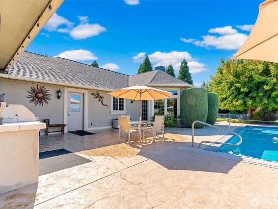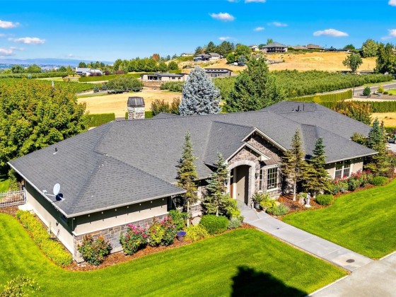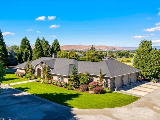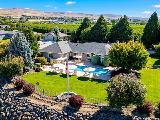 Welcome to your dream home in Terrace Heights! This gated 3-acre estate offers privacy, stunning views, and 2,327 sq ft of refined living space with 3 bedrooms and 3 bathrooms. Enjoy a bright kitchen with granite counters, oak finishes, and a central vacuum system. The backyard is a true retreat with a Gunite pool (new filter and heater) gas fire pit, BBQ hookup, and a view of both mountains. The primary suite features a private patio and walk-in closet. A 3-car garage includes a finished, heated bay, plus a 1,000+ sq ft shop for RVs, storage, or hobbies. A rare gem in a sought-after community.