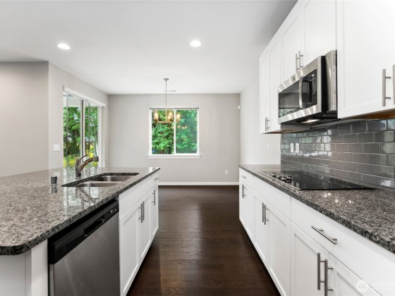 Better than new! This stunning home, ideally located near the iconic Cushman Trail, is just minutes from shopping, the waterfront, & freeways. Packed w/ high-end upgrades & luxurious touches like a chef-inspired gourmet kitchen w/ natural stone counters, striking tile backsplash, double ovens & smart st st appliances. Open-concept living area boasts a modern fireplace & contemporary lighting. Enjoy the covered patio w/ gas hookup year-round in a fully fenced yard backing to a greenbelt -a rare advantage in this highly desirable neighborhood. Upstairs: a sophisticated primary suite w/deluxe ensuite 5pc bath w/ spa-like shower, spacious loft, laundry room, + 2 more bedrooms. Central AC, electric & gas stove hookups, security system, Turn Key!