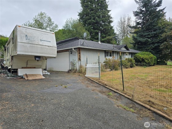 Opportunity awaits in this unique 4-bedroom, 1.5-bath home perched on a hill at the edge of Aberdeen—and safely out of the flood zone—this home is full of character and ready for a fresh update. Renovations have been started, and it’s the perfect opportunity if you are looking to finish the job and make it your own. The half bath was in the middle of being remodeled and needs finishing. Highlights include a spiral staircase leading to a private upstairs bedroom with its own entrance, a rec room with remnants of a cool retro wet bar (rebuild?), and an attached 2-car garage. Cozy dining room with sliding glass door to the backyard. Newer heat pump and hot water heater. Deck in the back needs redone.