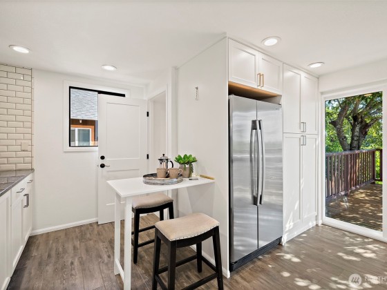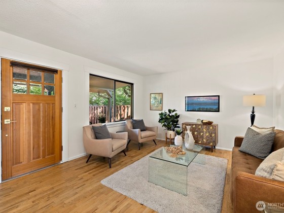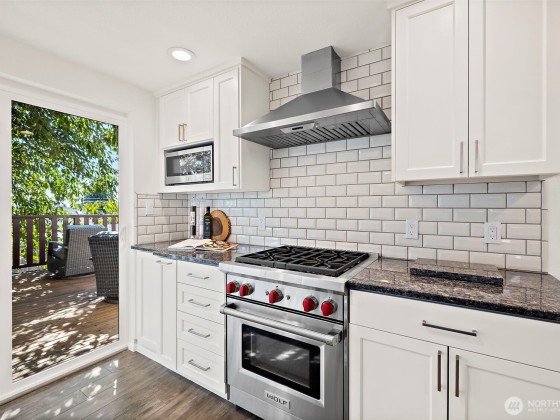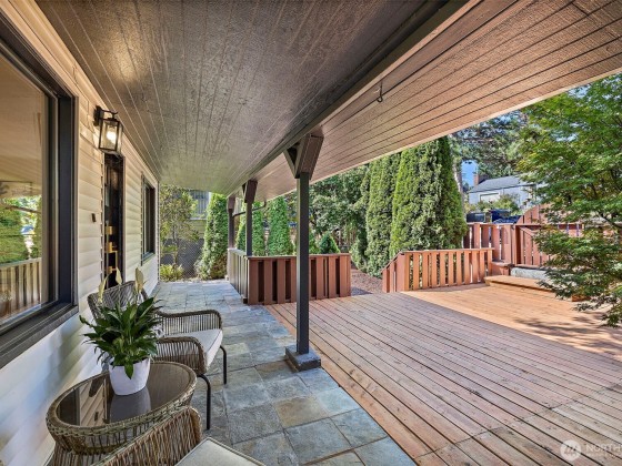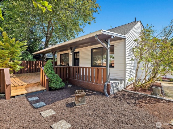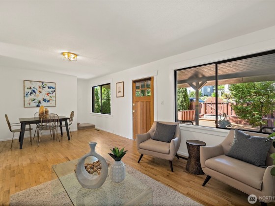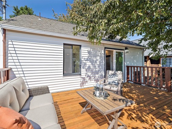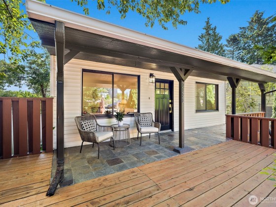 NEW PRICE!! Welcome home to this beautifully updated gem in West Seattle! You'll be greeted by the charming front porch, perfect for a morning coffee. Inside you'll find several updates throughout including: New paint, New carpet, New sliding door, New light fixtures, fully updated bathroom, refreshed front and back deck & a fully updated kitchen featuring a Wolf stove! This home also features a flex space perfect for a home office. Outside enjoy views of the mountains on your expansive back deck. The large flat yard is perfect for entertaining or the potential for ADU/DADU(buyer to verify, see SKYDADU Pamphlet)! This home also has alley access. Ideal location, close to parks, shopping and cafes. A must see!