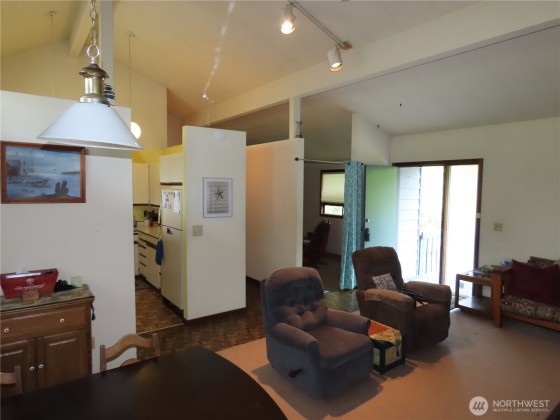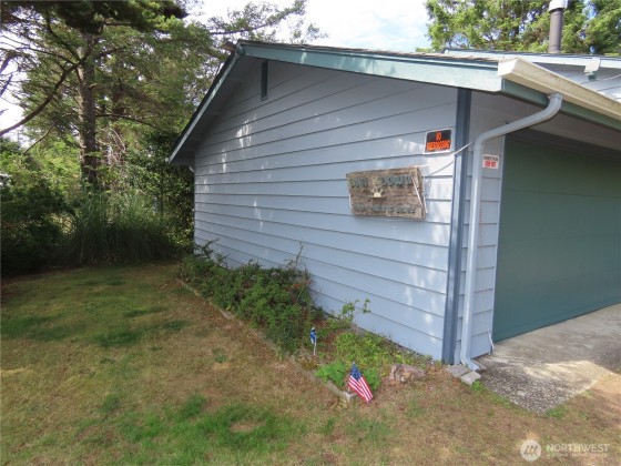 This is a nice home that has a short walk to the beach and has great sun sets and a partial ocean view from the deck and dining room and it would be a good place to have fun and relax! The home has two large bedrooms and a good sized 3/4 bathroom with a skylight and a large walk-in shower. And there are the living room, dining, and family room and kitchen and they are covered with the cathedral ceilings! There is a large deck off the kitchen with access to the laundry room. The one-story custom-built home with an attached spacious garage has been recently painted and is fully furnished and ready for you to enjoy! The property is a double lot that is partially treed and has room to add an outbuilding or shop if wanted!