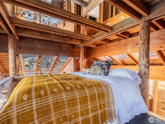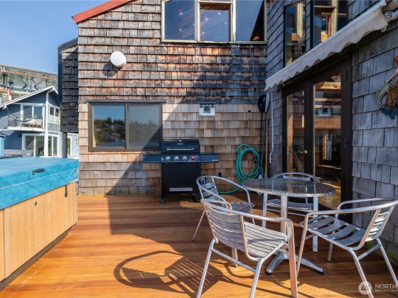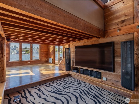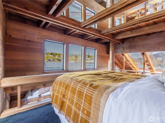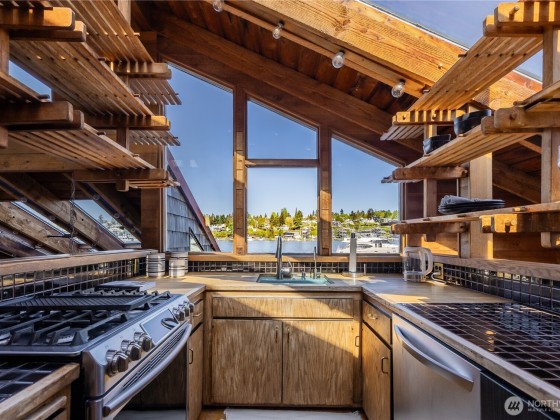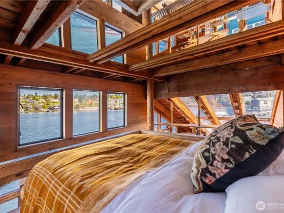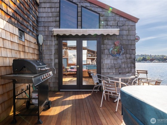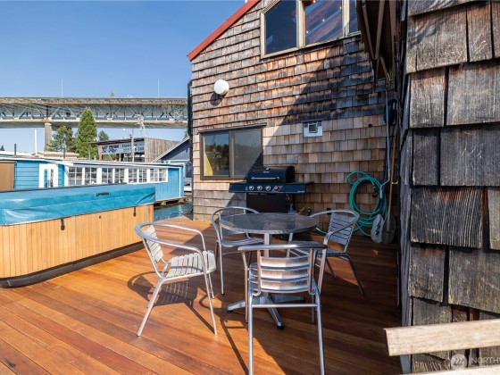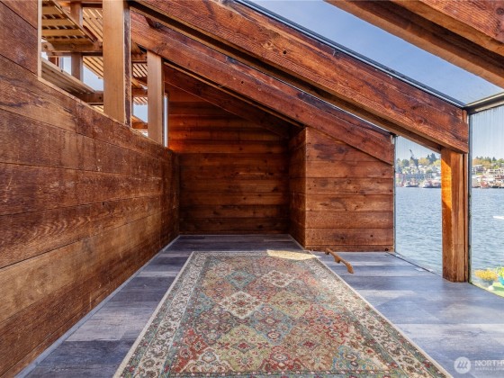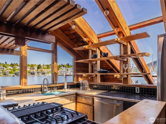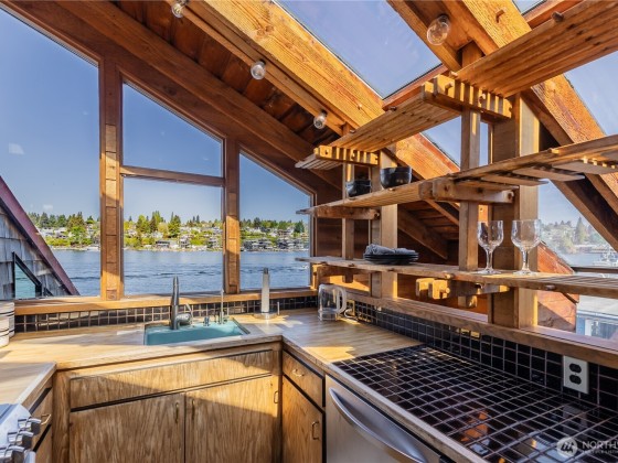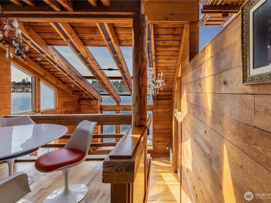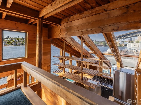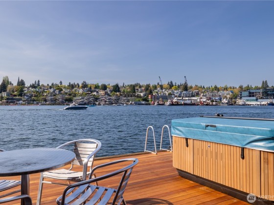 Quite literally the coolest floating home on Lake Union & of course it's end of dock. Condo dock + boat slip & parking. Soaring high above lake w/ views of city, Space Needle & mountains,this one of a kind home by renowned architect Jessup was featured in multiple publications. Lives like a floating treehouse & long admired by the passing boat parade for it's whimsy & beauty. Three bedrooms including primary suite, office/den, & bonus room. Dining room is mid level & a hub, while living room has cozy sunken space for movie night. Deck is newer & you can tie a boat up in front & in private slip behind home + hot tub! Sellers have lived here for many years & recently purchased home's condo slip for $1.5M so that you can own the moorage,too!