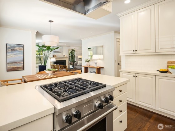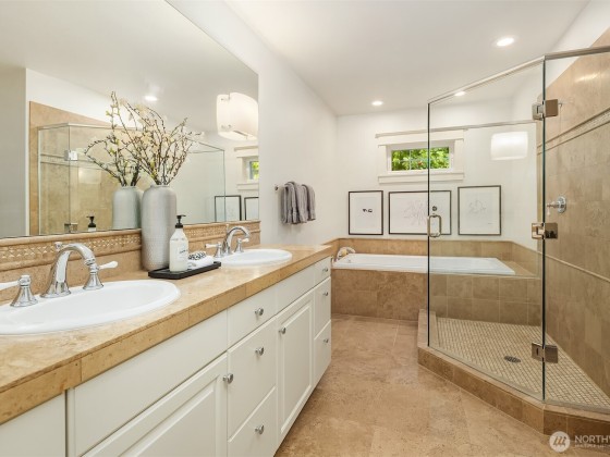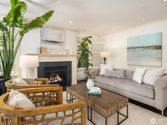Surrounded by lush, landscaped gardens on a prominent corner lot on Magnolia Blvd, this beautifully remodeled 1940s residence blends Cape Cod charm w/contemporary sophistication. Timelessly updated in 2006 & immaculately maintained, the home retains its classic character while embracing modern comfort. Inside, a sunlit living rm w/hdwd floors, custom millwork & gas FP adjoins a formal dining rm & chef’s kitchen w/Sub-Zero/Wolf appls & slab counters. Main flr has 3 BRs incl. luxe primary w/WIC, spa-like 5-pc bath & French doors to private porch. Lower lvl offers tall ceilings, 2nd FP, family/media rm, 4th BR, full bath & storage. Steps from Discovery Park, walking & biking trails- set in one of Seattle’s most sought-after neighborhoods.