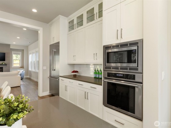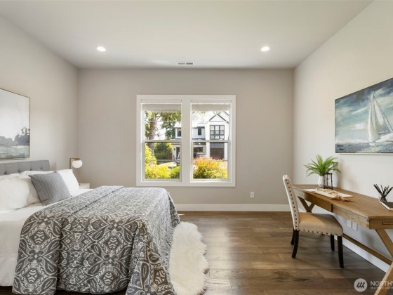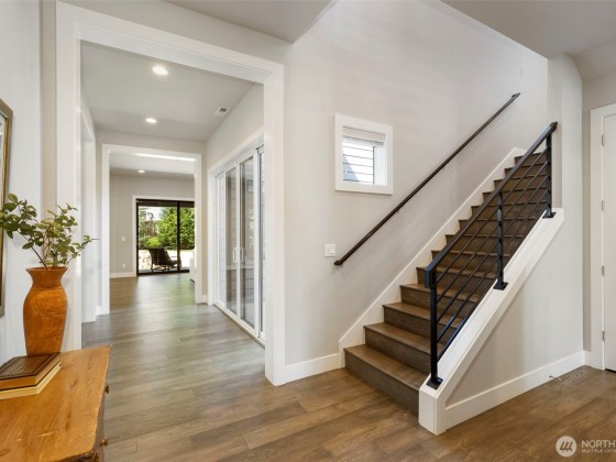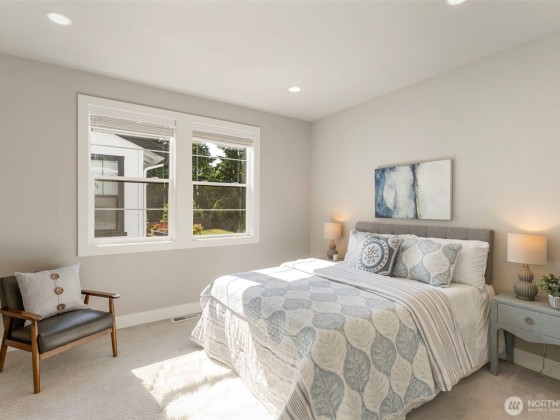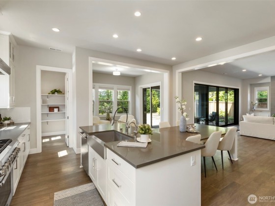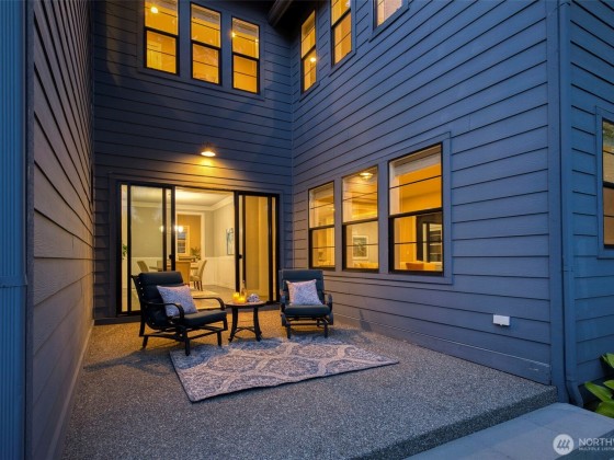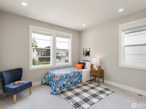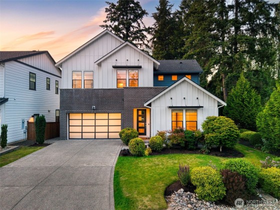 Located in the desirable Winslow Grove neighborhood near downtown Bainbridge, this modern farmhouse-style home offers light-filled living & thoughtful design throughout. The open-concept main floor features a chef’s kitchen with Thermador appliances, quartz countertops, large island, sitting area, walk-in pantry, & mudroom. A main-level guest suite includes a private en suite bath. Upstairs, the primary suite offers a spa-like bath w/ soaking tub, dual vanities, walk-in shower, & custom closet. Two additional bedrooms, a versatile loft, and a laundry room with utility sink complete the upper level. Enjoy multiple patios, a covered outdoor area, & a fully landscaped backyard w/ privacy. Two-car garage includes EV charger, built-in storage.