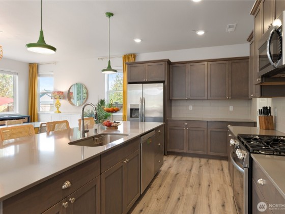 Looking for multi-generational living? The Lennar Bainbridge plan at Soundview Estates West is a thoughtfully designed 3,248 sq ft home. The main level includes a private 1-bedroom apartment-style guest suite, a spacious light-filled great room open to the kitchen and dining area. Upstairs features a family room, two bedrooms, full bath, laundry, flex/office space, and a primary suite with a walk-in closet and 5-pc bath. The guest suite offers a separate entrance (or entry from the main home), living area, kitchenette, bedroom, 3/4 bath, & laundry, providing flexible use. Additional highlights include a 3-car garage, fenced backyard, and smart-home features. Convenient location near schools, PSNS, shopping, and the Bremerton/Seattle ferry.