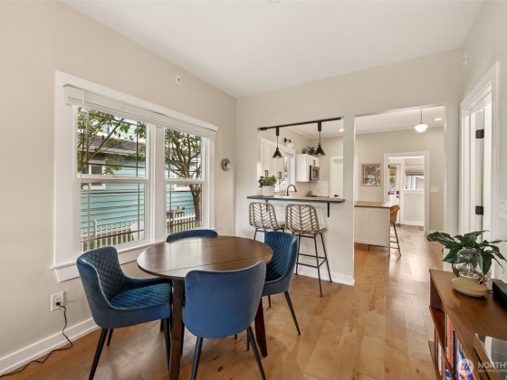 Just steps from Point Defiance Park & Point Ruston- this fully remodeled Craftsman offers the perfect blend of charm & convenience. Featuring 2 bedrooms plus a versatile upstairs space that could function as a 3rd bedrm, the primary suite boasts an attached ¾ bath. Recent upgrades incl. a NEW roof, LVP flooring, new paint/stain, new fencing, updated electrical, vinyl windows, & stainless steel appliances. The kitchen shines w/ quartz countertops & a walk-in pantry, while ample closets & built-ins provide great storage. Outside, enjoy a fully fenced backyard, fruit trees, RV parking, & an expansive 2 car garage w/alley access. Relax on the covered front porch & enjoy the serene Ruston lifestyle, a peaceful retreat that truly feels like home.