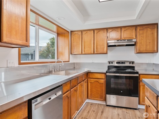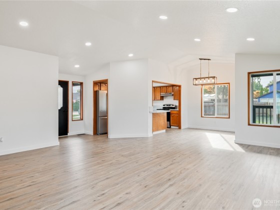 Turn-key and tastefully remodeled, this beautifully updated home is nestled in a quiet, well established neighborhood. Recent upgrades include a newer roof, luxury vinyl plank flooring, and new Milgard windows throughout. The kitchen shines with stainless steel appliances/countertops and fresh interior/exterior paint gives the home a crisp, modern feel. Vaulted ceilings plus the comfort of a heat pump for year round climate control. Big lot with potential for a shop, and RV parking. Nothing to do here but move in and enjoy this gem with space, style, and convenience!