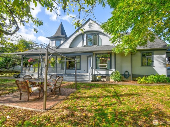 2014 complete restoration complying with current building codes. Original woodwork and fixtures reinstalled to make it look and feel like the classic beauty it is with all modern features. Updates include a newer furnace, electrical, water heater, roof, kitchen, insulation and bathrooms. Inside, you’ll find gorgeous fir floors, stunning millwork, vintage French doors, and hardware. Elegant spaces include a parlor, sitting room, and library—perfect for quiet retreats or entertaining. Set on a rare full acre in town, this property offers privacy, room for a shop/outbuilding, and a spacious yard. W/easy highway access, this one-of-a-kind home pairs historic craftsmanship with everyday practicality.