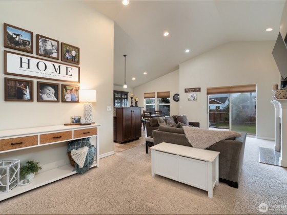 Move-in ready 1,611 sqft rambler on a corner lot featuring 3 bedrooms & 2 baths. Warm and inviting layout offers vaulted ceilings, an open floor plan and a cozy gas fireplace w/custom-built mantle. The kitchen has granite counters, an island with tall eating bar and open dining area. Primary suite features a full bath with double sinks and walk-in closet. A 2-car garage adjoins a utility room with sink for added convenience. Enjoy a fully fenced backyard and patio that is perfect for relaxing or hosting gatherings. This home combines both comfort and function—located close to schools, shopping, and local parks.