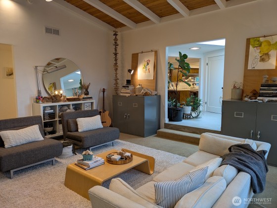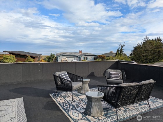 This 3 bd/3 ba (plus office) home in coveted 4 Seasons Ranch comes w/ an unbeatable lifestyle. Steps from the private community beach & tree-lined walking trails along Morse Creek, as well as the heated pool & creek-side golf course, next to the Olympic Discovery Trail. Home features a huge roof deck w/ ocean & mountain views, sunken living room w/ vaulted ceilings & stone fireplace, 2nd bedroom w/ en suite bathroom & walk-in closet, 4 skylights, 2 water heaters, newer roof, new heat pump & furnace/AC unit, oversized 2-car garage w/ workbench, cabinets, & shelving, plus utility room w/ extra storage & a large, attached carport. Beautifully landscaped corner lot w/ 2 private patios w/ pergolas, fenced side yard, & raised vegetable garden.