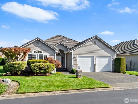 Beautiful move-in ready Stonehaven Lane, single-level 2,192 sqft home in the private Indian Summer GC gated community. Features include an open layout with a living room/great room, fireplace, kitchen island w/wainscoting, large pantry, formal dining room. Two bedrooms w/ 1 additional office/den or possible bedroom. Spacious primary suite with five-piece bath and large walk-in closet. Updated guest bath w/walk-in shower and tile floors, newer furnace/heat pump, new carpet and new paint. Large private covered patio with gas line for BBQ/firepit, 2 car garage, lots of storage. Close to schools, shops, trails, I-5, and JBLM.