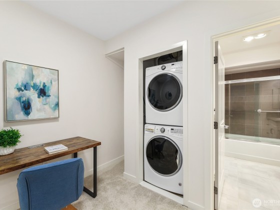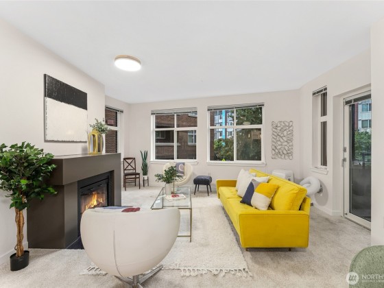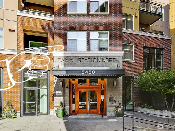 This is not your standard two bedroom condo! Completely newly renovated, this South facing condo enjoys plenty of natural sunlight and includes an additional 3rd room, ideal for your home office. Featuring a primary suite with spacious walk-in closet & 3/4 bathroom, a 2nd bedroom that has an attached full bathroom, electric fireplace, A/C unit stays to keep you cool in the summer, private South facing deck, two secure parking spaces in the common garage, a storage unit & in-unit washer & dryer. Canal Station is conveniently located in the heart of Downtown Ballard & includes resort style amenities such as concierge, fitness center, clubroom, hot tub, sauna, business center & private dog area.