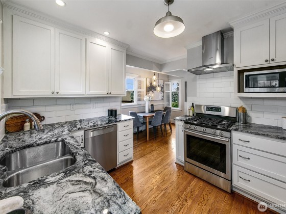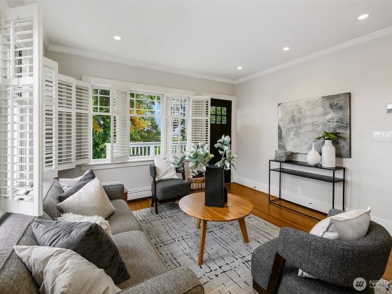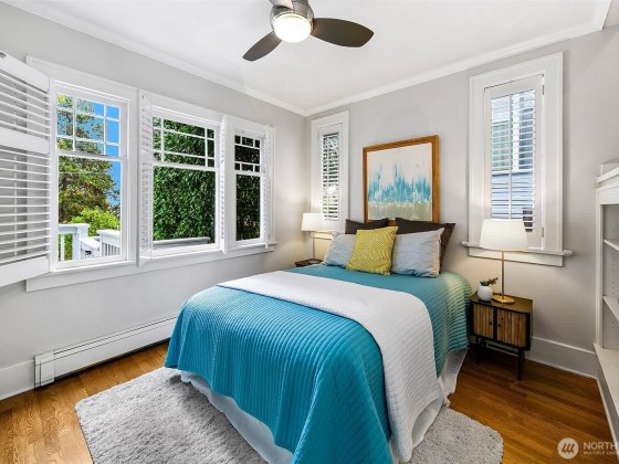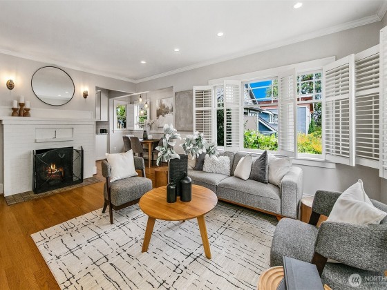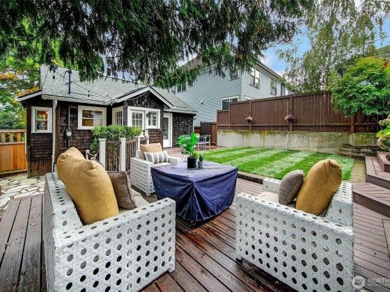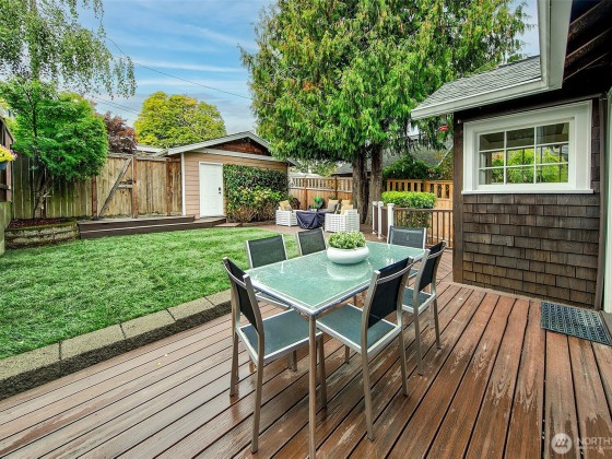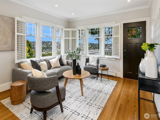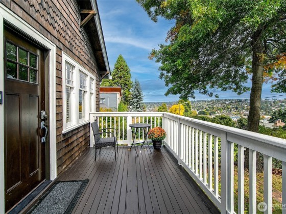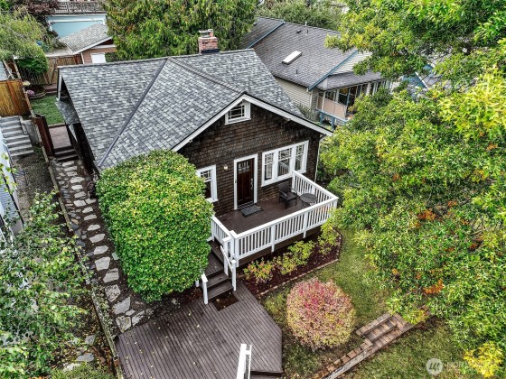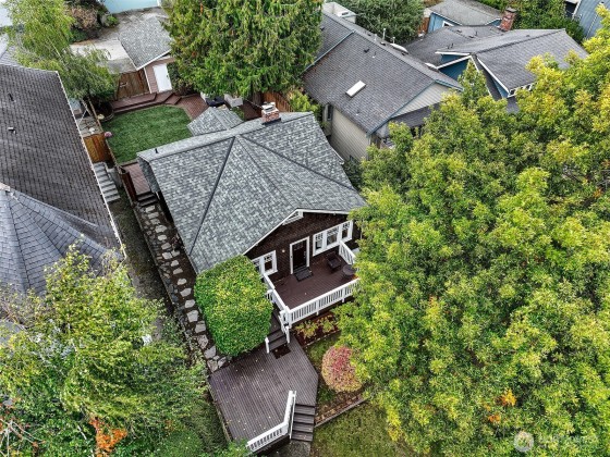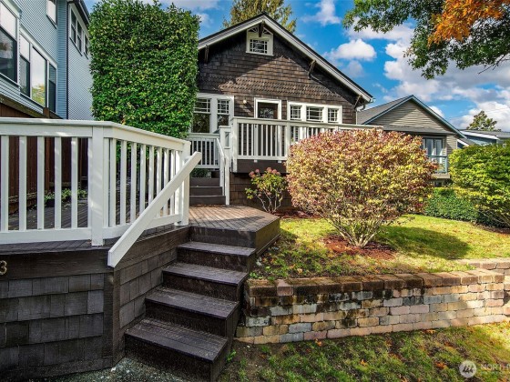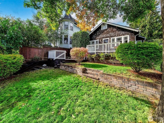 Welcome home to this beautifully updated home in the heart of North Queen Anne. Home sits up high and private over lush terraced gardens and has a stunning view of the waters of the ship canal and Fremont. Features include hardwood flooring, stainless appliances and gas as well as a mudroom and a fully finished lower level. The backyard is an entertainer's delight with room for a large outdoor dinner party or just relaxing. Home features alley access and an oversized modern garage as well as additional off-street parking. Unique loft access to attic offers room for expansion. The location makes for easy access to services in QA, Ballard or Fremont as well as a quick commute to SLU.