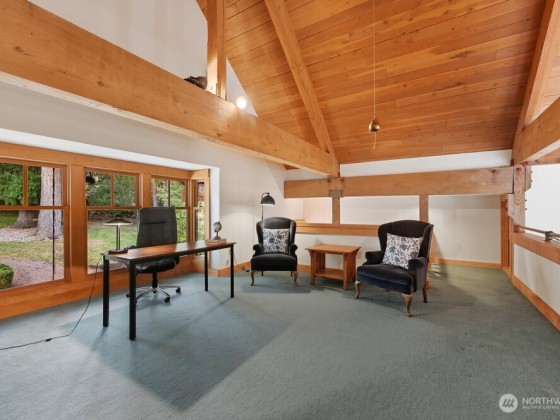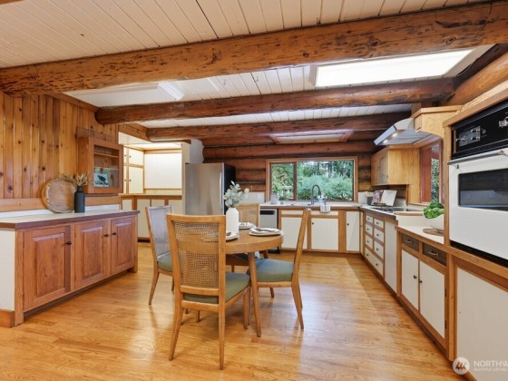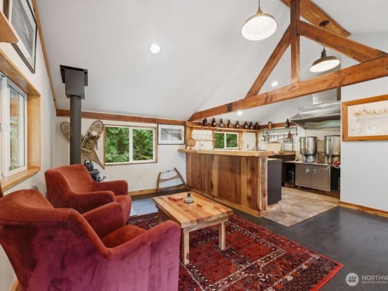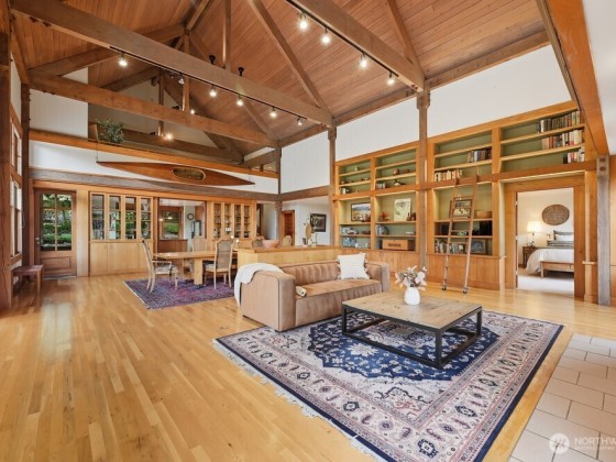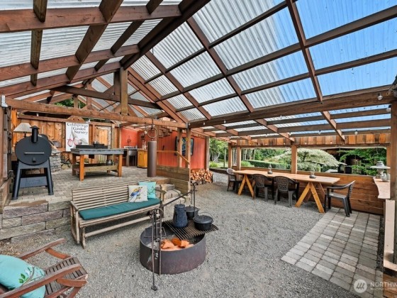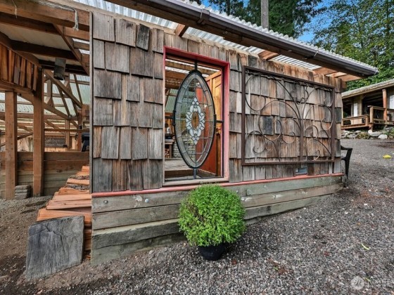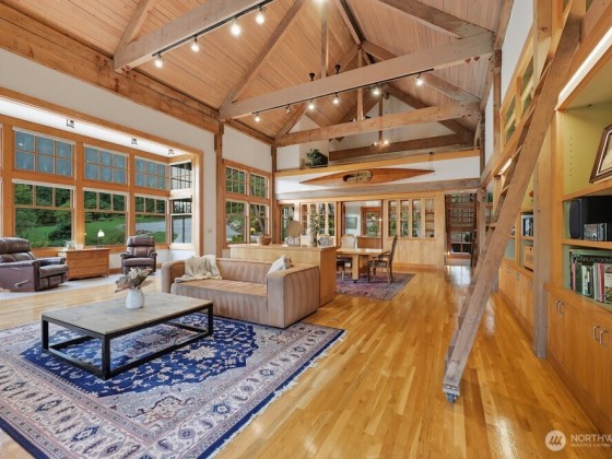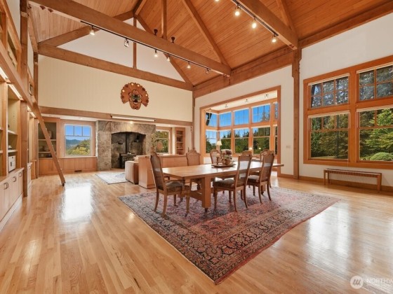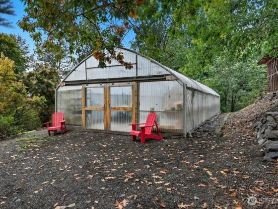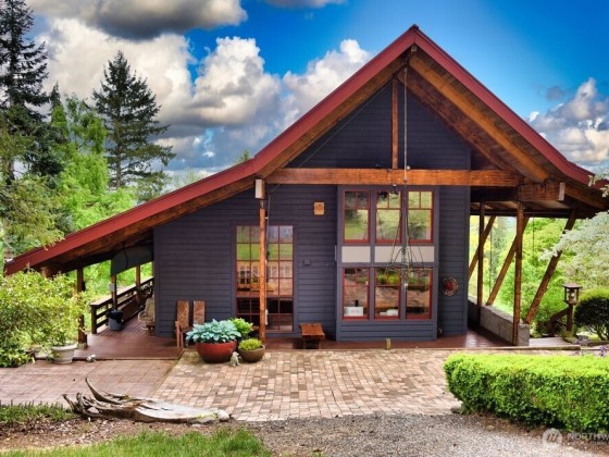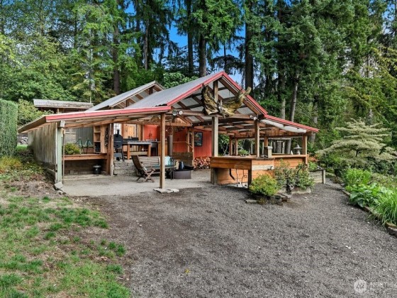 An extraordinary property in Snoqualmie Valley, immersed in natural beauty. It features two unique homes: a timber-frame house, designed with soaring 30-foot ceilings and timeless craftsmanship, and a hand-built log cabin crafted by original owners Mary, a master gardener with a talent for landscape design,& Reid, a forestry professor and woodworker The estate also includes a charming one-room cottage with its own kitchen and bath, a brew shed, a workshop, each equipped with cozy wood stoves. A sprawling outdoor kitchen, featuring a wood-fired pizza oven crafted from the creeks clay, adds a warm, communal touch. Surrounded by enchanting gardens and set against sweeping valley, it’s a haven to live artfully, dream boldly, and grow deeply.