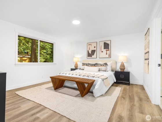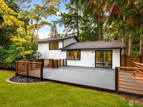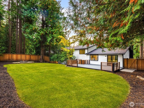 Discover this bright and beautiful, fully remodeled home just a walking distance to Pine Lake, where vaulted ceilings invite an abundance of natural light into the modern and spacious kitchen and dining rooms, seamlessly flowing into a stylish living room adorned with elegant accents and recessed lighting. Upstairs, enjoy two primary suites that make this home ready for multi-generational living or long-term visitors. Downstairs, a generous second living room, complete with an attached extra bedroom. Step outside to the massive, newly built deck and fire pit, amid fresh landscaping in a fully fenced yard. Enjoy a new driveway leading to the spacious three-car garage. Within the award-winning Issaquah School District.