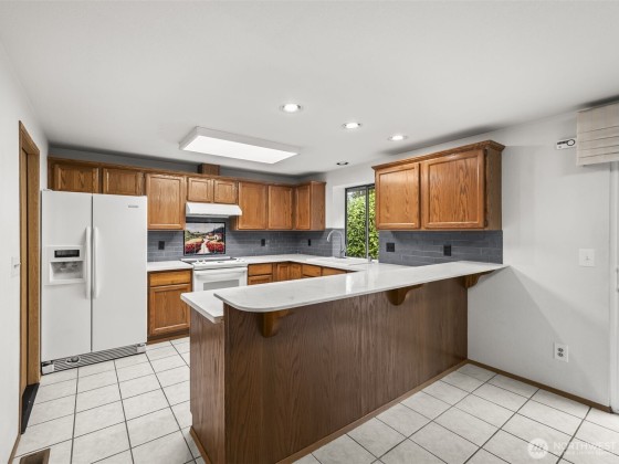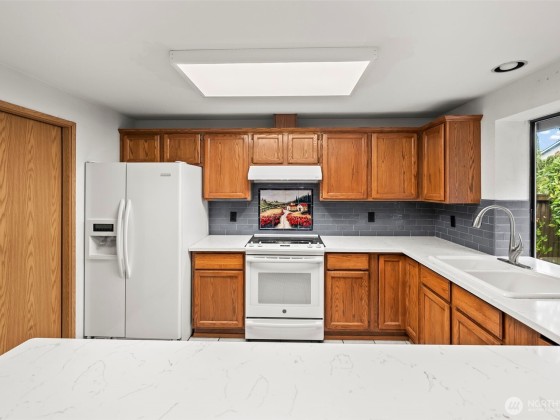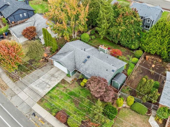 Perfect for your first OR forever home! This lovely one-level 3 bdrm, 1 & 3/4 bath home features a tiled entryway complete with skylight and a cozy living room with a freestanding gas stove. The well-appointed kitchen has new countertops and tiled backsplashes. You will appreciate the deep sink. Don't miss the oversized walk-in shower and closet in the primary suite. Unwind in your own private backyard oasis-fully fenced. The newer stamped patio is surrounded by beautiful, mature landscaping. You'll also appreciate the nearby Vassault Park and bike path to Pt. Defiance. Extra storage in the 2 car garage and RV parking with 50 amp electrical service creates the perfect blend of comfort and convenience. Close to schools & shopping.