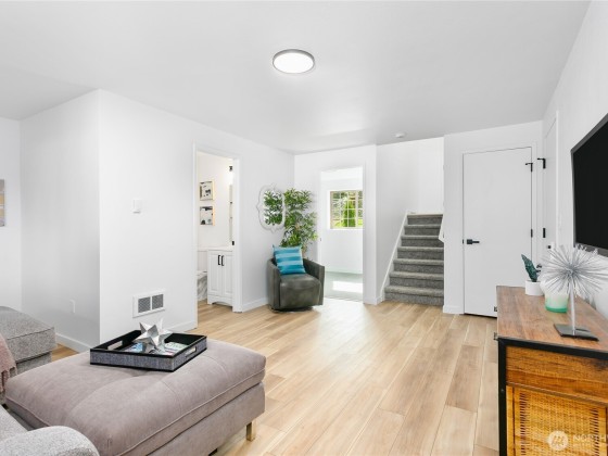This Home in Tacoma will check ALL the boxes! Fully Turn-KEY & Ready for Move-in TODAY; this home has been updated top to bottom. Back alley access to 2 car garage+ main floor entry w/no stairs for possible guest suite? 1 Bedroom, 1 Full Bath + Living area on the main/lower floor! Upstairs you will find a spacious Living & Dining area with pristine chef's Kitchen. Quartz countertops, shaker cabinets, stainless steel appliances all brand NEW! Enjoy beautiful LVP flooring, fresh carpet, interior/exterior paint throughout! Back deck accessible from kitchen AND Primary Suite w/ensuite Bathroom w/walk-in closet. 2nd Bedroom upstairs. Perfect lawn, fully fenced+ custom patio. This is your oasis central to it ALL. Walk to 6th AVE & Parks. NO HOA