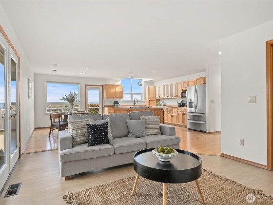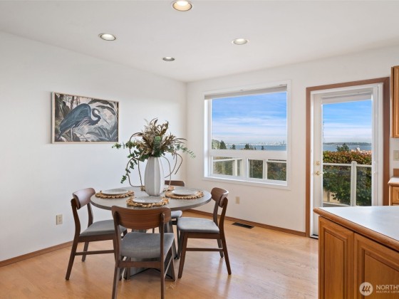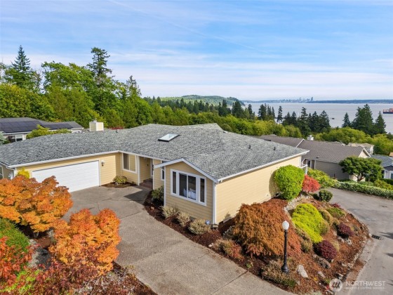Expansive day-to-night views highlight this open-concept 1-story home with just under 2,000 sq ft. Enjoy stunning vistas of the Sound, Seattle skyline, Bainbridge, Blake Island, Mt. Rainier, Vashon, & the Cascades from the vaulted living room or the full-length deck ideal for entertaining or quiet mornings. The kitchen opens to a casual family room with fireplace & dining area. Home features 3 bedrooms, 2 baths, plus a versatile flex room currently used as an office. Nestled on a quiet dead-end street with mature landscaping, it’s a 5-min walk to the beach, dock, coffee shop, restaurants, & library, & only 10-min drive to the Southworth ferry/fast ferry. Updates include roof & siding (2012), A/C (2023), & newer fridge, stove, & dishwasher.