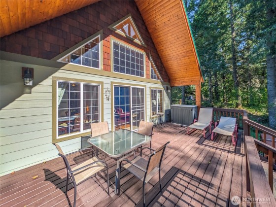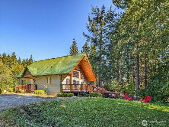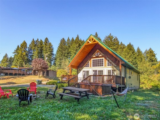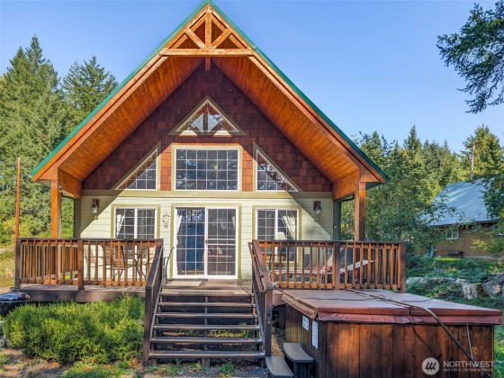 Turnkey 3BR Chalet with Hot Tub, Rental Income Potential, and Walkability — Charming craftsman-style chalet in Packwood’s desirable Skyline neighborhood—walkable to local breweries, shops, and trails. This 3BR/2BA retreat features birch floors, hickory cabinets, pine ceilings, and timber accents that create warm mountain character. Relax by the fireplace, soak in the forest-view hot tub, or watch elk pass by. Enjoy a covered deck, outdoor fire pit, and modern amenities including Wi-Fi and new furnishings. Just 20 minutes to White Pass Ski Area and Mt. Rainier, this home offers strong short-term rental potential and year-round appeal.