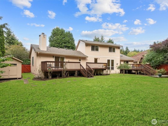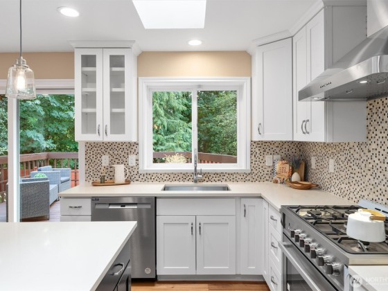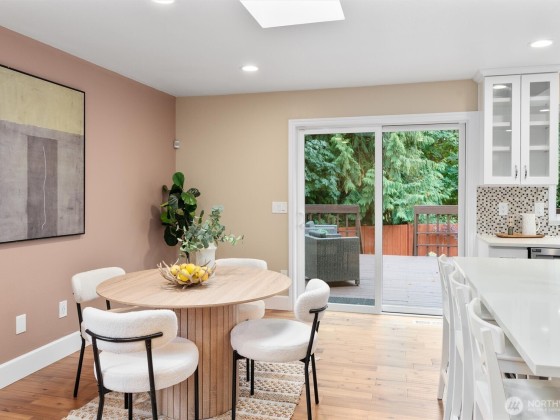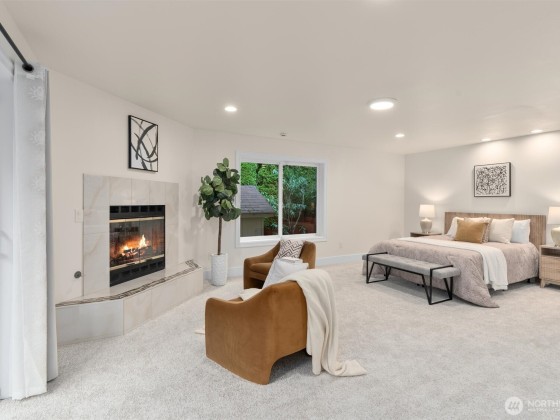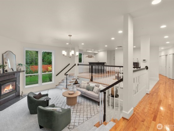 In Somerset on a quiet cul-de-sac, this upgraded NW contemporary blends comfort and convenience in award-winning Bellevue School District. The gourmet kitchen space features plentiful cabinetry, quartz counters, stainless appliances, a large island with breakfast area, and access to the deck/backyard. Entertain with ease in the dining room alongside a bar and a generous sized deck. Primary suite on the main has a fireplace, sitting area, private luxurious bath & deck access. All baths nicely updated. Flexible 4th bedroom/office. Lower level adds a hobby/exercise space. A big fully fenced level yard backs to a greenbelt—perfect for nature lovers, pets, & play. Convenient access to I-90 & 405, downtown Bellevue/Seattle/SeaTac airport.
