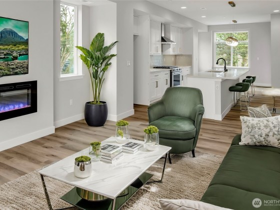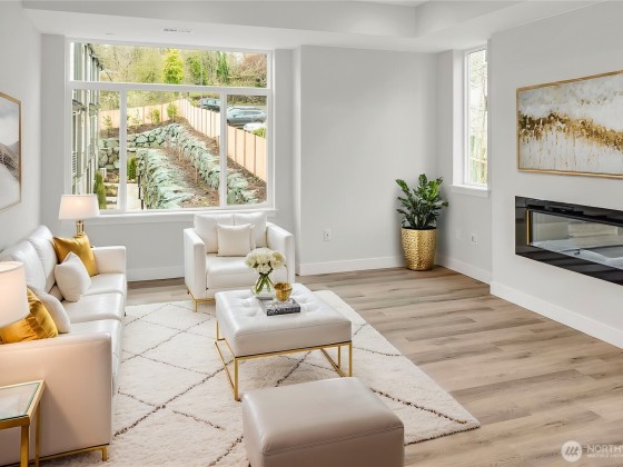 *RATES STARTING AT 4.0%!!* Lot A105 at the Shore16 by MSR Communities offers an active lifestyle just blocks to DT Kenmore and close to the Burke-Gilman Trail, UW Bothell, and central location between Seattle and Bellevue. Bed & 3/4 bath on ground floor is perfect guest rm or office. LUXURY FINISHES 3cm quartz counters, soft-close cabinetry w/under cabinet lighting, KitchenAid gas range w/SS hood, full height tile backsplash, durable LVP on main floor, sleek 48" electric fireplace, forced air w/cooling, wrought iron railings, over-sized windows, stylish primary bath with dual sinks, covered deck. Cat-6 wiring, 2-car garage w/opener+keypad, EV charging, TV wire tube, ring doorbell. Northshore SD! Buyer Reg Policy.