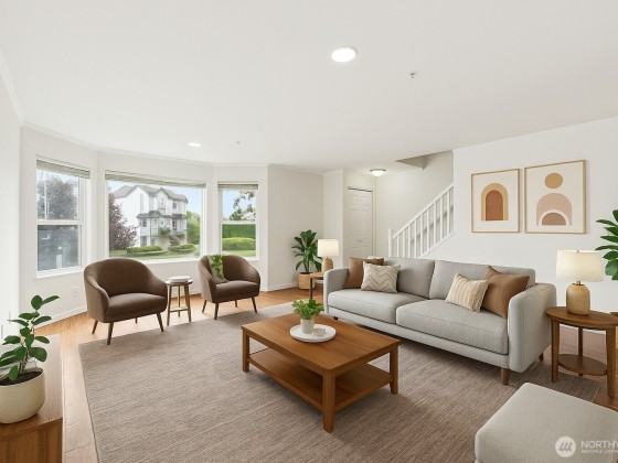 Welcome to this refreshed 3-story townhouse conveniently located near Boeing. Natural light fills the open living spaces, enhanced by new paint and thoughtfully updated finishes throughout. The first floor provides a spacious two-car garage with additional storage. On the second floor, enjoy a large living room with a bay window, dining area, well-appointed kitchen, half bath, laundry, and a balcony perfect for relaxing. The top floor features two bedrooms, including a primary suite with a generous walk-in closet, two bathrooms, and a second balcony for added outdoor space. With a shared backyard, and proximity to shopping, dining, and major routes, this home blends comfort and convenience in a sought-after Everett location.