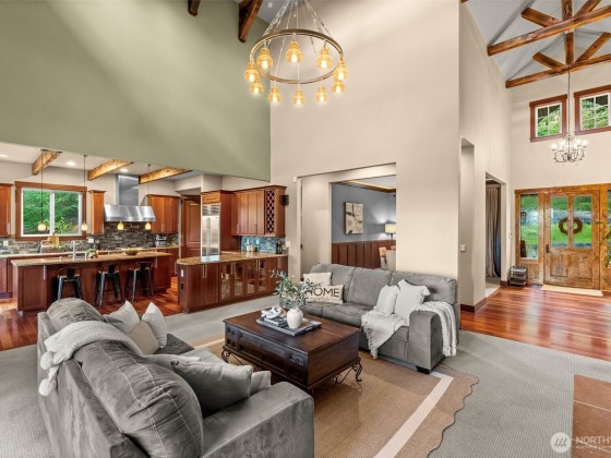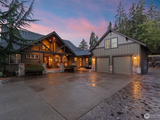 Looking for a place where life slows down? Fully fenced & completely usable. Sweeping views of Glen Cove, Mt. Adams, & Mt. Rainier. 24' beamed ceilings, solid walnut front door, & 3 fireplaces. Main floor primary feels like a private spa, w/ 2 closets, steam sauna, & deck access. The kitchen is as functional as it is beautiful, over 1,200 square feet of covered outdoor space perfect for gathering in every season. The property is a dream for hobbyists, horse lovers, or anyone who craves space: a gorgeous solar-powered barn w/ loft, detached shop, multiple outbuildings, garden space, ample parking, & even access to riding trails. It’s rare to find a property that balances comfort, function, and pure magic like this one. Welcome home.