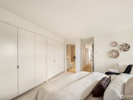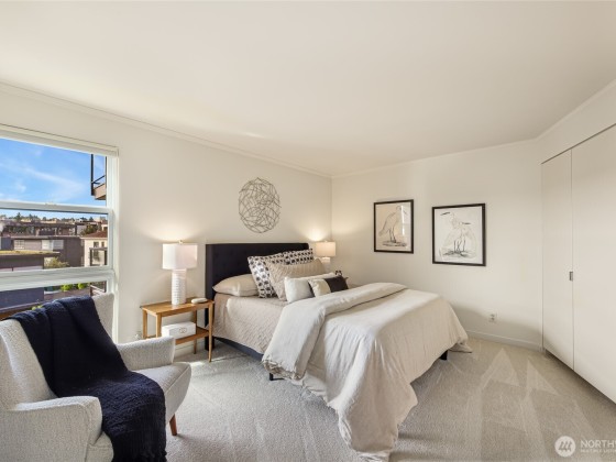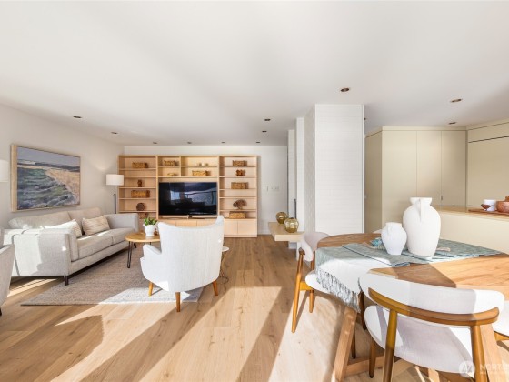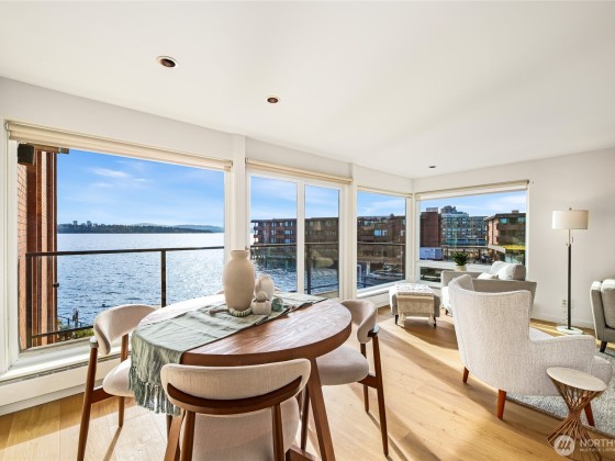 Nestled along the shores of Lake Washington at the quiet end of Madison Park, sits Lakeshore West, an idyllic condo community. This sun-drenched 3rd floor unit enchants with mesmerizing southern views of the lake. Floor to ceiling windows in the dining & living room & Scandinavian style kitchen make modern living easy & enjoyable. Large primary suite with a wall of built-in wardrobes + 2nd BR & guest bath. This is one of the few homes with washer/dryer in unit. Refreshed with brand new engineered hardwood flooring & paint, there is nothing to do but move in & experience life in this vibrant enclave. Secured parking, on-site manager, fitness room, private community dock & even a book library complete the amenities. Live along the lake!