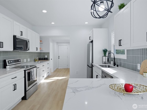New Price, great value! Step into a fully renovated and move in ready 3BR/2BA home with modern finishes throughout. The open layout and bright interior is perfect for entertaining, while the large fully fenced yard is ideal for privacy, outdoor gatherings, gardening, or play. Bring your own vision to the massive 1,000+ sq. ft. detached garage with convenient alley access, which could be used as a garage, shop, business, storage, or possible DADU conversion for added income & increased property value. Close to freeways and shopping centers, this property is ideally located for renters and owners alike in the up & coming Eastside of Tacoma. A rare chance to own a versatile home that combines a modern touch with long-term investment value.