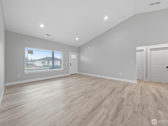 Brand-new 3-bedroom, 2-bath home offering just under 1,500 sq. ft. of modern living space! This turn-key property is move-in ready with LVP flooring throughout, matte black fixtures and hardware, and stylish pendant lighting in the kitchen. The kitchen is complete with quartz countertops, a full backsplash, and stainless steel appliances. The spacious primary suite features a walk-in closet, dual vanity, and a walk-in shower with sliding glass doors. Additional highlights include a laundry room with shelving, a 3-car garage, endless potential outdoors with a blank canvas yard ready for your personal touch. Located in a growing neighborhood surrounded by new construction homes, this home delivers comfort, style, and convenience.
