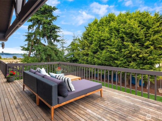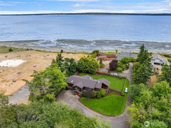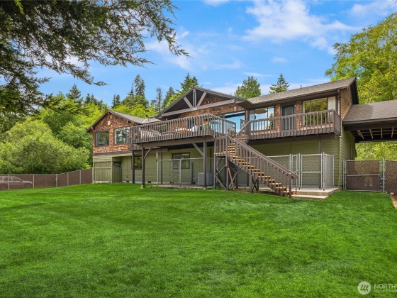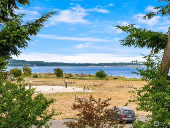 Come embrace the beach lifestyle and turn this stately and very solid house into your dream home. This home features primary living areas on the upper floor, maximizing the partial views of Puget Sound and marine traffic from the most lived in areas of the house. Spacious room sizes provide options for various lifestyles. Just through your private gate access the abundant amenities of beautiful Fay Bainbridge Park. A fully fenced backyard is perfect for gardening, lawn games, and your furry friends. Yes, this property is a bit dated but bubbling over with potential and opportunity for a fortunate buyer with vision. An oversize two car garage has deep bays, storage, and a sizable shop area. The covered RV carport has power hookup.