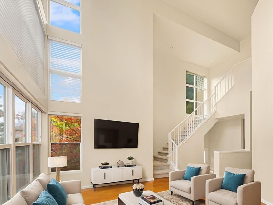 Rare Renaissance Resale in Bellevue. 3 Bedrooms+Loft/Den, 3.25 baths, in 2,020 Apx SqFt of quality living space. Refinished hardwoods, fresh interior paint, new carpet. High vaulted ceilings. Built-in speakers. Lots of windows bring in a ton of natural light. Wonderful kitchen with granite island, lots of built-ins & nook area. Family room with warm gas fireplace. Primary suite with 5-piece bath. Convenient lower bedroom with its own .75 bathroom. Back patio area with mature landscaping is great for entertaining. A/C for those hot days! Easy access to I-90, 405, Factoria & Downtown Bellevue. Award winning Bellevue School District.
