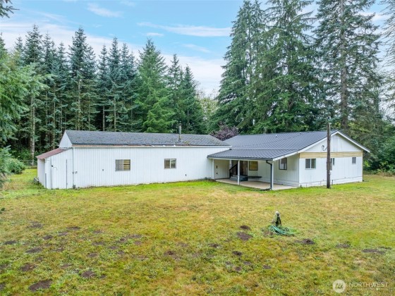 Situated on a level 2 acre lot, this charmer offers cozy living room with woodstove, open-concept kitchen with eating bar, dining room with slider to covered patio. Brand new carpeting and water heater recently installed!! Mechanic's/Carpenter's dream detached 3-car garage with workbench, sink and tall ceiling!! Wonderful location with nearby lakes, fishing, camping, river, and hiking trails!!