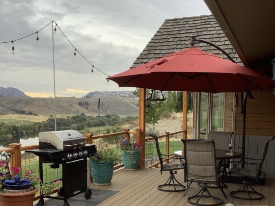Enjoy breathtaking views of the mountains & river from this beautifully maintained 3-bedroom, 4-bath home. Featuring updated flooring throughout, a spacious kitchen, living room with fireplace, this home offers both comfort and style. Primary bedroom has a newly remodeled bathroom with walk-in shower, fixtures, heated floors and more. Main bath has been remodeled with new tub, shower, heated floors & cabinet. A flexible guest bedroom can serve as an additional room, living room & the large deck is ideal for outdoor entertaining. The grounds are thoughtfully landscaped & fully equipped for country living. Highlights include a 24x70 shop, greenhouse, chicken coop, fencing, 5.9 acres, with irrigation. Private location on dead end road.