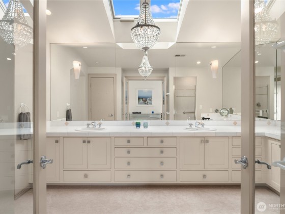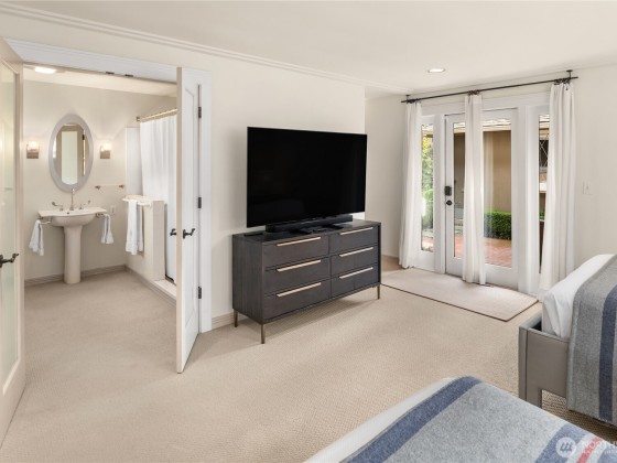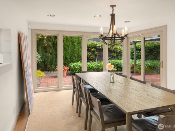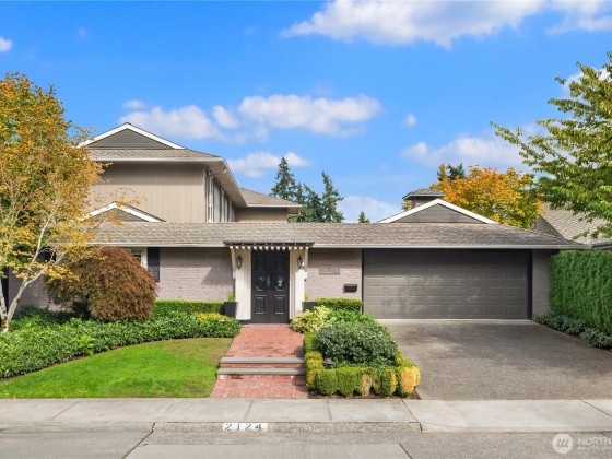 Located in the coveted Broadmoor neighborhood, this refined home captures California-style living with seamless indoor-outdoor flow. The main level features a light filled living room with vaulted ceilings and walls of glass connecting the outdoors, and a cozy den. A generous main-floor master suite offers comfort and ease, while a spacious second upstairs suite adds flexibility. Two private, sun-filled courtyards extend the living space—one with a striking outdoor fireplace. The finished lower level includes ample storage and a full laundry room. A generous two-car garage completes this exceptional home. Just steps from Madison Park’s shops and restaurants.