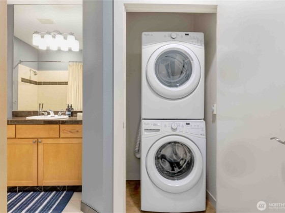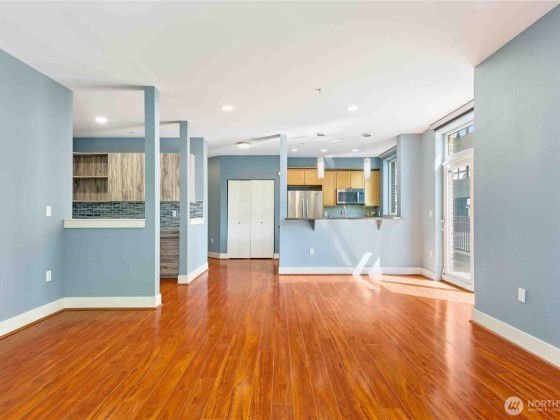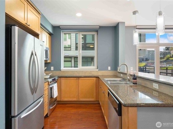 Rare ground-floor corner unit in Reverie at The Marcato! Centrally located seconds from Downtown Tacoma, restaurants, and the Tacoma Dome. This bright, open-concept home features granite counters, stainless steel appliances, and a breakfast bar. Enjoy an oversized private patio—perfect for morning coffee or entertaining. The spacious primary suite offers dual California Closets, plus a custom office ideal for working from home. Upgrades include engineered hardwood floors, plush carpet, recessed LED lighting, and remote-control blinds. Secure garage parking, private storage, and luxury amenities: fitness center, theater, resident lounge, and outdoor BBQ courtyard. Urban living at its best!