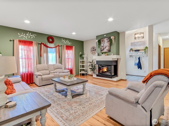 Huge price drop! Immaculate 4 Bed, 3.5 bath Lakewood home! Relax in the spacious living room w/ a cozy fireplace on cool days & Central A/C on those warm summer nights. The gourmet sized kitchen boasts stainless steel appliances w/a welcoming eating space & French doors leading to a yard adorned w/ a covered patio. Enjoy the bonus of an office/flex room & a primary Suite on the main floor, complete w/ a full bath & 2 walk in closets! Upstairs are 3 additional nice sized bedrooms, including a second primary suite w/a full en-suite &full bath. Attached two car garage on a .25 acre lot, close to JBLM,etc. Relocating is never an easy task. Make it effortless & trendy w/the furniture & decor in the living & dining rooms, reach out for more info!