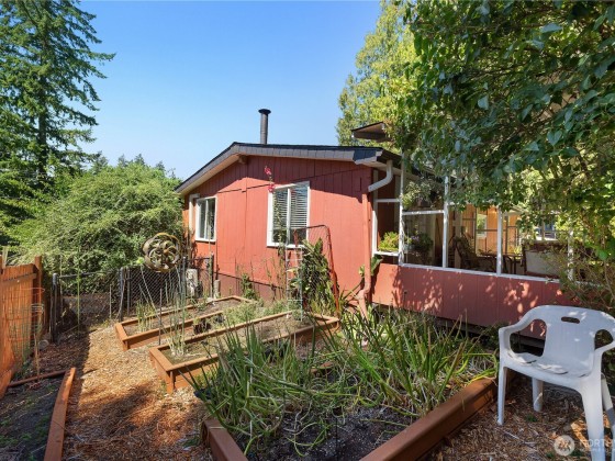 Discover this charming Manu home on its own land in the desirable Carlyon Beach Community. A gardener’s dream, the property boasts raised beds, abundant containers, and beautiful plants to enjoy year-round. Relax on the covered front porch or unwind on the covered back patio, taking in your gardens. Vaulted ceilings & a bright, cheerful kitchen create a welcoming atmosphere. With 3 beds & 1.75 baths. Updated bath features walk-in shower, & mini split system keeps you comfortable w/heating in winter & cooling in summer. You’ll also enjoy all the perks of Carlyon Beach—breathtaking views, community dock, marina, waterfront park, playground, clubhouse, community garden, dog park, and more. Bring your imagination and make this cutie your own!
