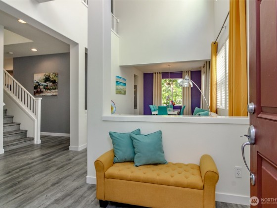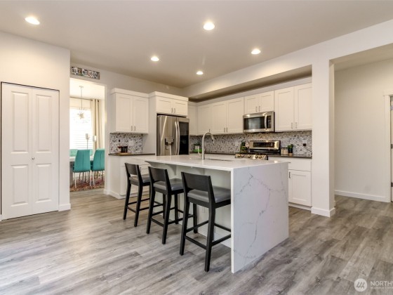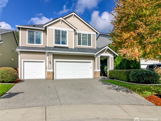 Enjoy life at the Estates in Lakeland in a quaint cul de sac w/peaceful greenbelt. Stunning is just the beginning. Grand entrance greets you w/soaring ceilings & new LVP flooring thru out from formal living & dining, into a completely remodeled dine-in kitchen w/custom cabs, quartz tops, stainless steel appliances open to living room. Main floor guest bed/office w/adjacent 3/4 bath. Upstairs offers primary suite w/vaulted ceilings, dual walk in closets, en suite tiled bath w/soaker tub & walk in shower. Generous sized bedrooms & huge bonus room. New roof, heat Pump/AC, sprinkler system + Govee lights makes it the coolest house in the hood! Coveted Dieringer school district. Walk to Lakeland Town Center & parks, minutes to Hwy 167 & 18.
