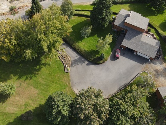 Discover this spacious and versatile multi-level home nestled in the heart of the beautiful Okanogan Valley. With 3 bedrooms & a primary suite that features a private balcony. The great room boast a floor to ceiling fireplace. The lower lever features a bar and rec room anchored by a brick hearth w/ a wood stove. The large wrap-around and an expansive deck is perfect for entertaining or relaxing, this property offers the ideal blend of comfort and function. Enjoy the convenience of an attached garage, a separate carport, and the added bonus of a 3-car garage plus workshop—a dream for hobbyists or extra storage. Set in a stunning, park-like setting just minutes from town! A rare find with space, scenery, and endless potential!