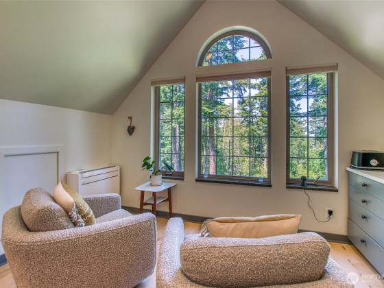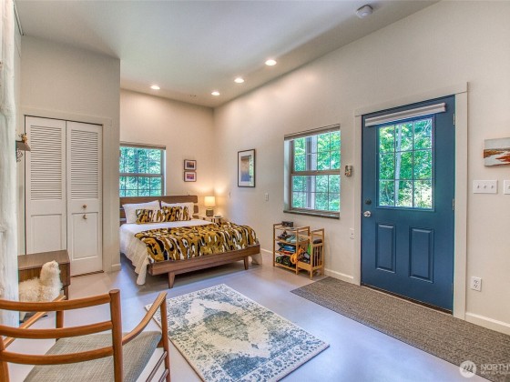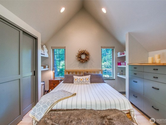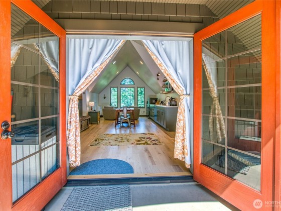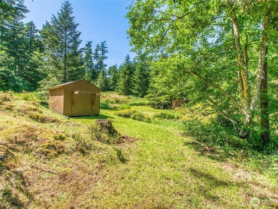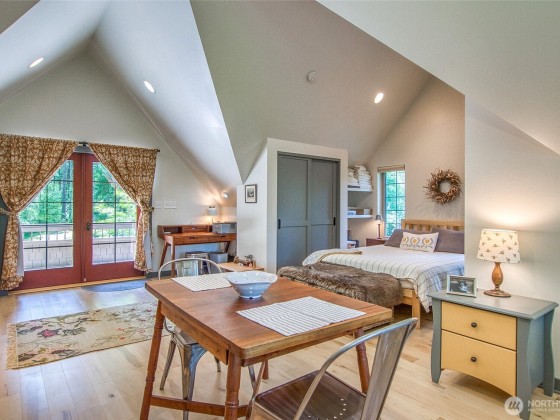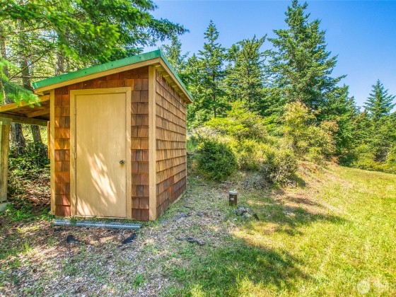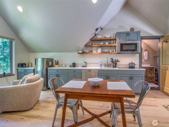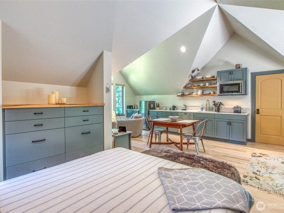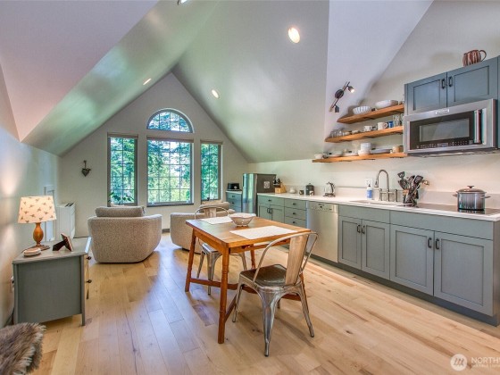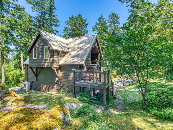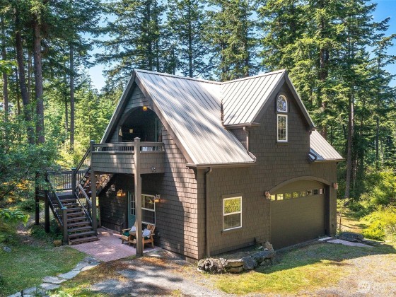 SWEET RETREAT Immaculate Craftsman-style carriage house. 506 sq ft upper level open living space with full bath, covered deck and attic storage. Lower level with radiant floors, includes finished space with half bath and 552 sq ft 2-car garage, currently used as living space. Recent upgrades in upper level include: flooring and trim, closet and built-in bedroom dresser, kitchen, bathroom vanity. Downstairs upgrades include: bathroom vanity, floor paint, new washer/dryer. New interior/exterior paint throughout. Private, mainly level and lightly treed 3.38 acre lot with garden space in desirable Suncrest neighborhood. 3-bedroom septic installed, ready for your main home addition. Near Deer Harbor and Cayou Quay marinas. Fiber optic internet.