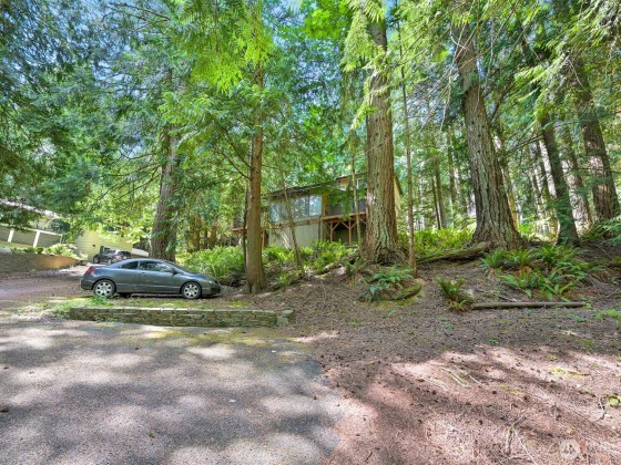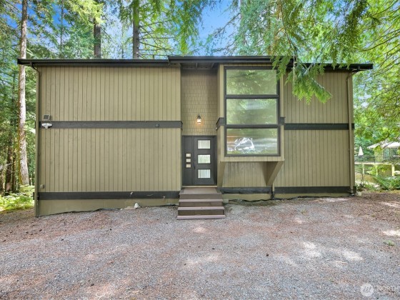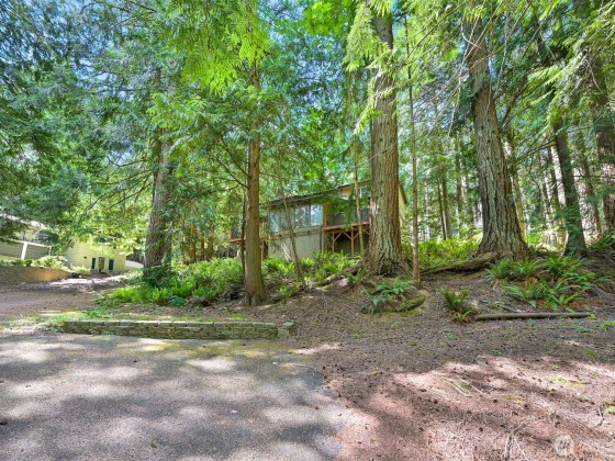 Step into this architectural mid-century modern gem, beautifully renovated over the past year into a stylish, cozy retreat in the vibrant lakeside community of Sudden Valley. Situated just inside Gate 3 on a level, private ¼-acre corner lot, this home blends timeless design w/ modern updates. Soaring vaulted ceilings & dramatic architectural windows frame serene views of the lush natural landscape, while two brand-new Trex decks create perfect outdoor spaces to relax or entertain. The oversized level lot allows abundant off-street parking & offers excellent potential for a carport or garage. Use the spacious walk-in crawlspace for dry storage. SV community amenities incl 18 hole golf, marina, beaches, pools, tennis/pickleball & trails.