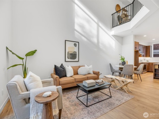 Luxury Townhomes in the heart of Queen Anne neighborhood. Elegance abounds, Clean Modern Finishes, Soaring Ceilings w/windows to match. 3Bed/3Bath, 1 Car Attached Garage w/EV Charging. Main level offers open floorplan, walk out balcony extends entertaining space. Chefs kitchen features tons(!) of cabinet space, quartz counter tops, seated island, Induction Range. Top level Primary Suite w/en-suite Bath, walk-in closet & walk out balcony. Lovely territorial & mountain views of the surrounding neighborhood from the entertainment size Roof Top Deck (peek-a-boo view of the Space Needle!).Walk to shopping, coffee shops, dining & parks. Quick access to major commuter routes. Completion October 2025. 4 Star Built Green. Ask about $30k buyer bonus