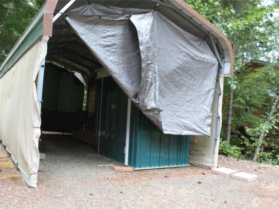 Price reduced! Cushman cutie! Located at the end of a quiet cul-de-sac with partial westerly views of the mountains and sunsets, this adorable tiny home comes fully furnished and with all the extras. There is a carport with storage and the outdoor tools stay. Two lovely decks to choose from, one with a gazebo. All the outdoor furniture stays, too. The lower area hosts a firepit, woodshed and a new fully permitted 10x16 shed with a porch and bar. The quaint kitchen boasts an oversized sink and new SS range with matching microwave while the living room boasts vaulted ceilings. New queen mattress in the loft. The community has so much to offer with parks, golf, athletics, hiking, clubhouse and boat launch less than a mile from this home.