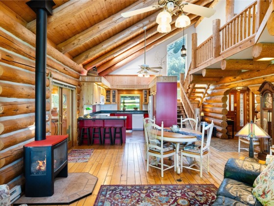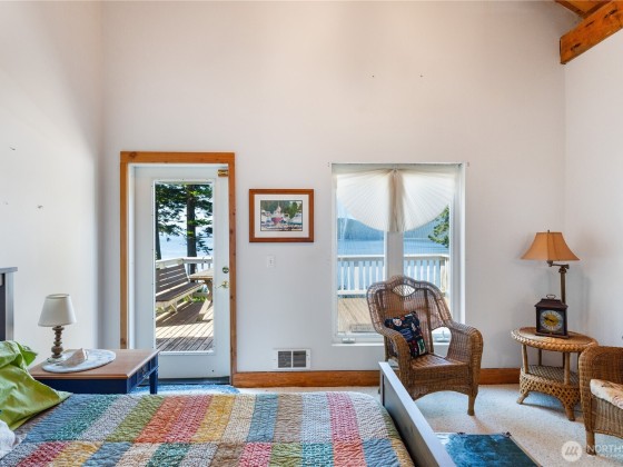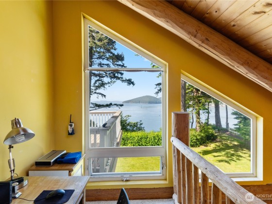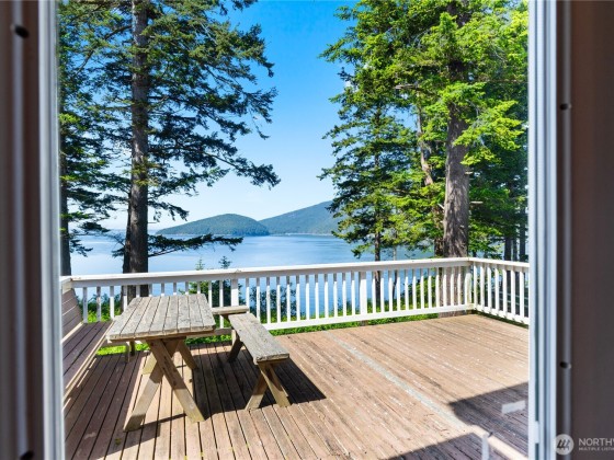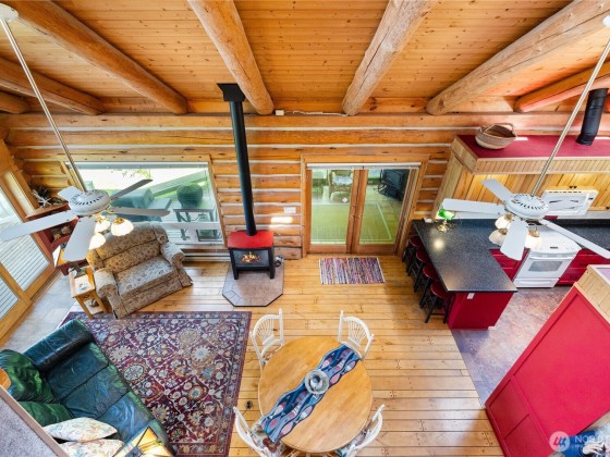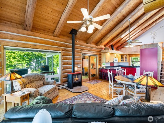 Experience the magic of waterfront living with 102 ft of high bank frontage, offering spectacular westerly sunset views over Cypress Island, the Olympic Mts and Bellingham Channel. Custom log home blends rustic charm w/ modern comfort, featuring vaulted ceilings and a wall of windows to let the natural light and views in. Remodeled kitchen with lots of cabinets and newer appliances. Main level master bedroom and master bath with access to a deck. Upper level has two bedrooms and one full bath. Large decks on both upper and main level. 798 SF car garage with attached shop. Sunroom with woodstove for a cozy place to relax. Community beach access.