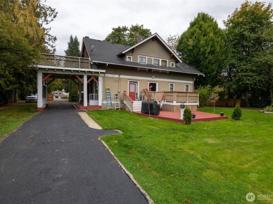 Rare opportunity to own this beautiful historic home. Home has many updates while still preserving the original charm to include wood floors, leaded and beveled windows and so much more. New custom fence and gate add to your privacy while you enjoy the large covered front porch, new hot tub, large deck out back and a deck area above the carport too! Brand new exposed aggregate walkway and the driveway was recently resealed. New plush carpet in the living room, family room, staircase and 3 bedrooms. Kitchen refresh w/new appliances including a gas range for the chef. New fixtures, new 98% efficient gas furnace. This home is close to the Centralia sports HUB, park and great shopping and restaurants. This would make a great Bed and Breakfast!