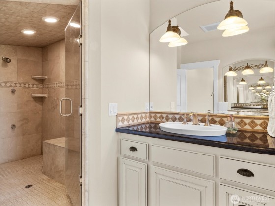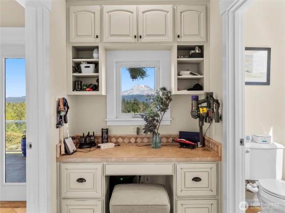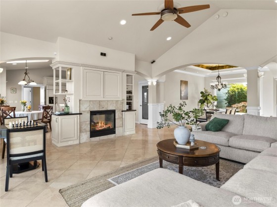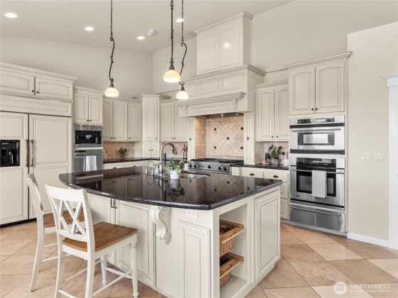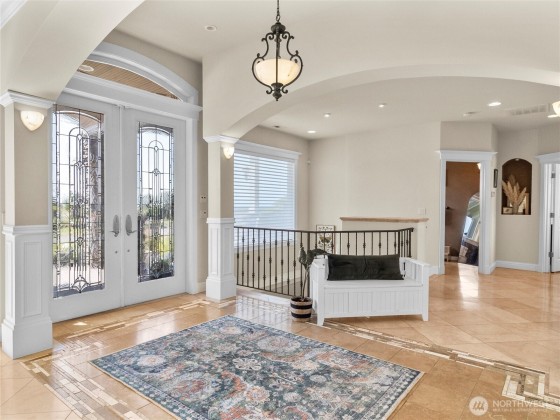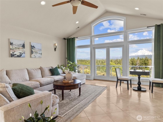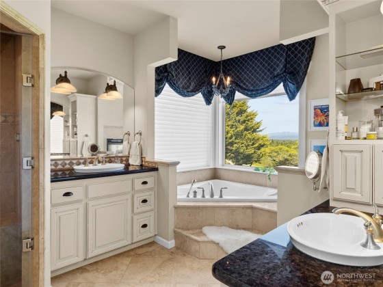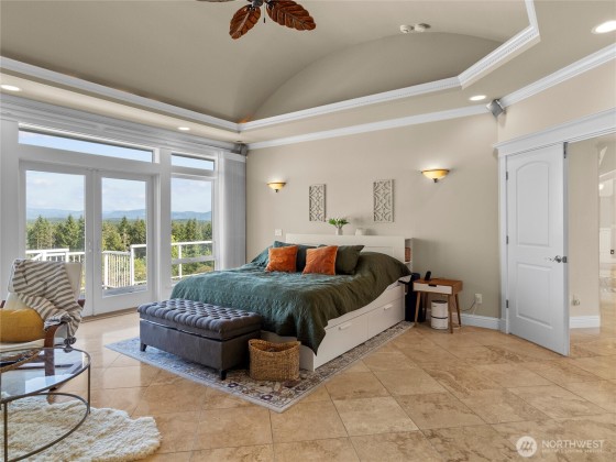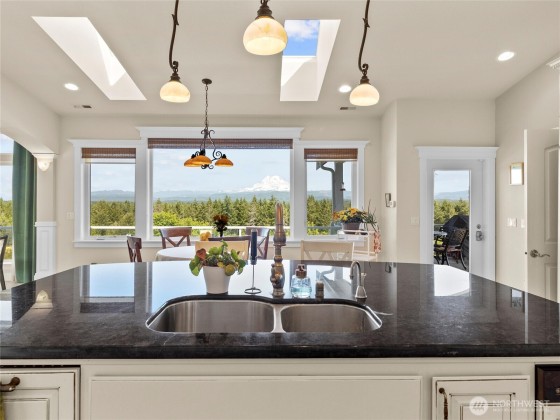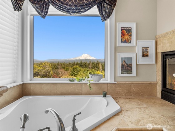 Live above it all at Kinsman Court a gated community with luxurious estates & unmatched panoramic views of Mt. Rainier, the Olympics & Cascades. This 4,500+ sq ft home on nearly 10 acres features 3 bedrooms, an office (potential 4th bed), 3.75 baths, and a main floor primary suite that feels like a private retreat with a fireplace, jetted tub, steam shower & mountain vistas. Chef’s kitchen includes granite slab, high-end built in appliances, radiant-heated travertine & hardwood floors. Other features include a theater room, dual laundry on main & lower level, A/C, remote blinds, built-in vacuum, RV hookups & generator equipped w/auto transfer. Professionally landscaped with water features, hot tub & full sprinkler system. Luxury awaits!