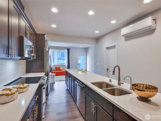 Like *NEW Taylor Morrison Resale! The Alba floor plan is a cozy, spacious open floor plan that draws you straight to the kitchen with an abundance of shaker style cabinets that feature soft close doors/drawers, plus a massive island w/breakfast bar seating. Upstairs you will find the primary suite, additional guest room, and laundry room. Watch the sunset from your deck or step out for some fresh air as you meander through the community’s walking paths. Just steps away to the dog park, picnic shelter and park nearby. Easy access to HWY 167 and Kent Station for shopping, dining and entertainment options. Territorial view and amazing sunsets! PRE_INSPECTED !
